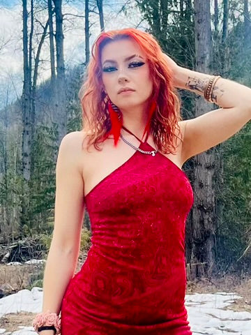 a short pair of red genuine feather earrings, complete with a lava stone bead for strength & protection to help you conquer anything that life throws at you.
